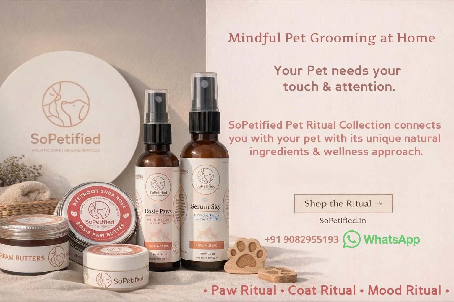 These unique, handcrafted with intention, SoPetified Holistic Pet Grooming & Mindful Ritual Collection is available online and at various events all over India.